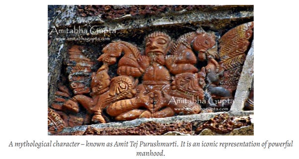 Amita-vikrama Puruṣa Mūrti; Dutta Para Temple in Joypur, Bankura district, West Bengal, India [Source: Brick Temple Towns of Bankura – Part IV : Joypur & Gokulnagar]