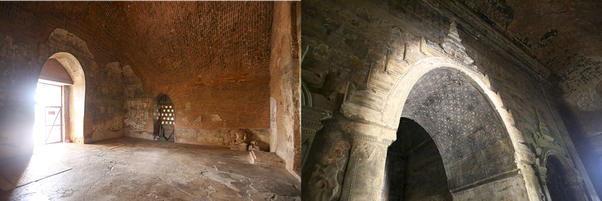 Vaulting is also known in Bagan period since 11th century CE as a consequence of knowledge of true arches — the vaulting techniques of the Bagan era were lost in the later periods but true semicircular arches could be seen in Mrauk U kingdom’s temples of 15th-16th century CE indicating that Mrauk U retained or independently adopted true arches after their use declined in Bagan Empire’s territories. True semicircular arches also continued to be in present, but mostly as gateways and without any load over them.