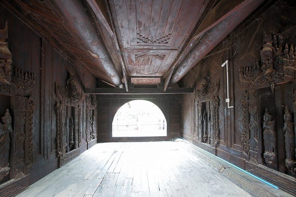 → Parts of Shwe In Bin Kyaung in Mandalay, Mandalay Region, Myanmar (Built 1894 CE) [Source: Shwe In Bin Kyaung Monastery, Mandalay, Myanmar]