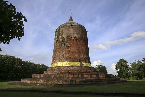 Cylindrical shape Bawbawgyi pagoda in Sri Ksetra, Hmawza, Myanmar (Built 6th-7th century CE) [Source: Bawbawgyi Paya Stupa, Pyay (Prome), Myanmar]