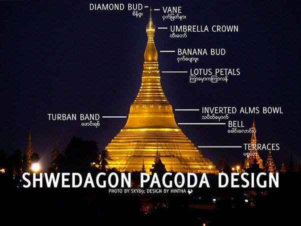 — multi-staged roof, with an odd number of tiers (3–7) incorporated into Myanmar Buddhist and royal architecture