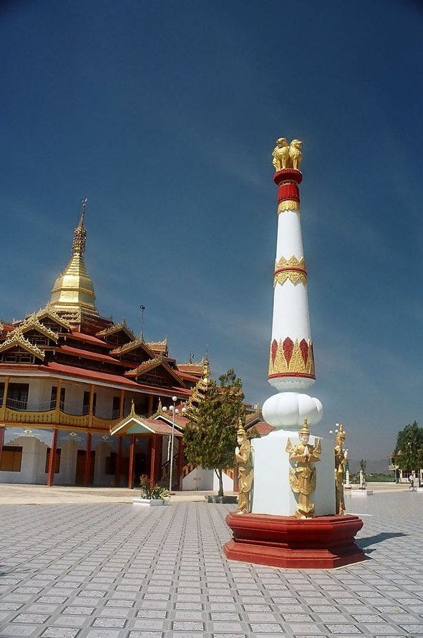 — ornamented flagstaff celebrating the submission of local nats (animistic spirits) to the Dhamma