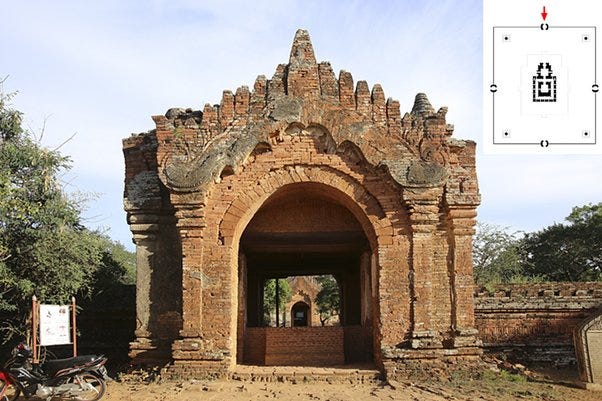 Monument 0566 in Bagan, Myanmar — a temple complex with structures arranged over a pentagonal platform (Built 13th century CE) [Source: https://www.orientalarchitecture.com/sid/1445/myanmar/bagan/monument-0566]