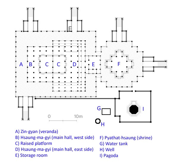 Floorplan of Maha Aung Mye Bonzan Monastery in Inwa, Mandalay Region, Myanmar [Source: Maha Aung Mye Bonzan Monastery, Inwa (Ava), Myanmar]
