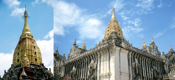 → Myanmar-style temples with Nāgara-esque style central tower examples: