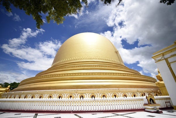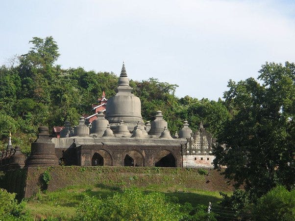 Kaunghmudaw Pagoda in Sagaing — mostly Sri Lankan style stūpa with Myanmar influence (Built 1636–1648 CE under king Thalun) [Source: Kaunghmudaw Pagoda, Sagaing]