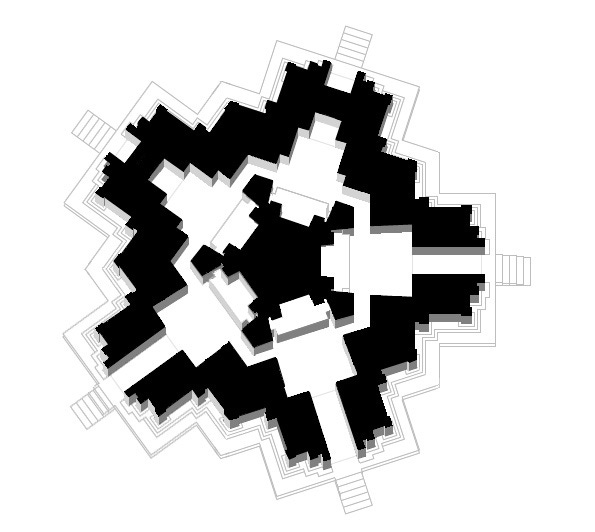 Floorplan of Lemyethna Temple Complex in Bagan, Mandalay Region, Myanmar — the individual structures are largely symmetrical but the complex in its entirety is not. [Source: Le-myet-hna Temple, Bagan, Myanmar]