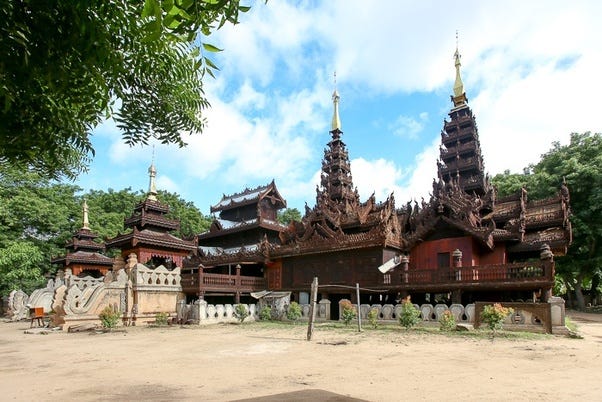 Kyaung is a monastery comprising the domestic quarters and workplaces of Buddhist monks. They are typically built of wood, meaning that few historical monasteries built before 1800s CE survive.