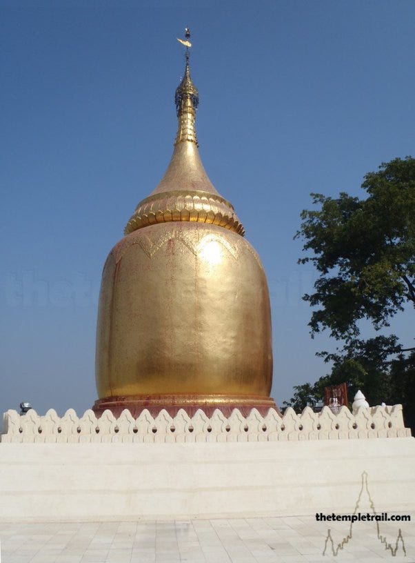 Lawkananda stūpa in New Bagan township enshrines a replica of the sacred Buddha tooth relic which had been sent to Burma from Sri Lanka as a gesture of goodwill between the two countries. (Built 11th century CE under Anawrahta Minsaw (r. 1044–1077 CE)) [Source: Monuments of Bagan: Rise of the First Burmese Empire | Sahapedia]