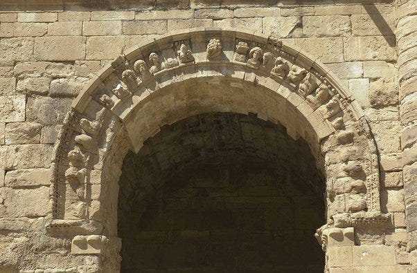 Decorated arches with faces found in Hatra, Iraq [Source: https://en.wikipedia.org/wiki/Hatra]