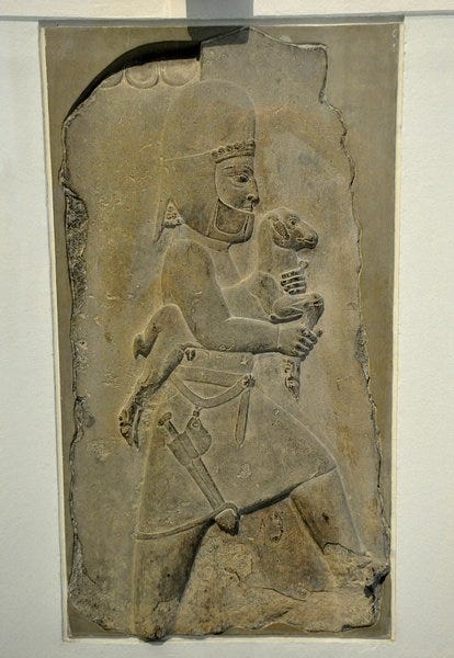 Middle-Elamite bas-relief of warrior deities, Šušin, 1600-1100 BCE [Source: File:Susa, Middle-Elamite basrelief of warrior gods 1600-1100 BCE.jpg - Wikimedia Commons]