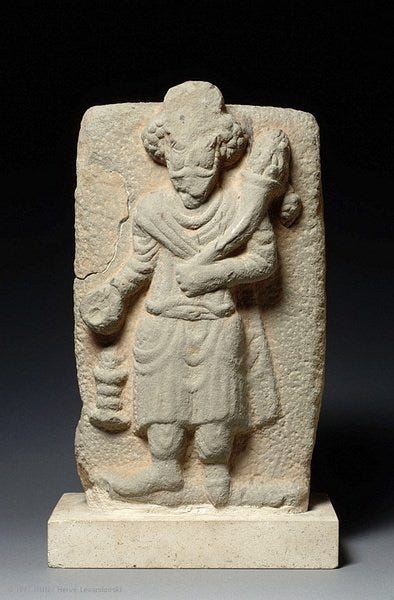 → Frontal bas-relief of Parθavan king offering sacrifice to Heracles-Verethragna — the king holds a cornucopia in his left arm while his right offers a sacrifice at a Fire Altar [Source: ancient.eu]