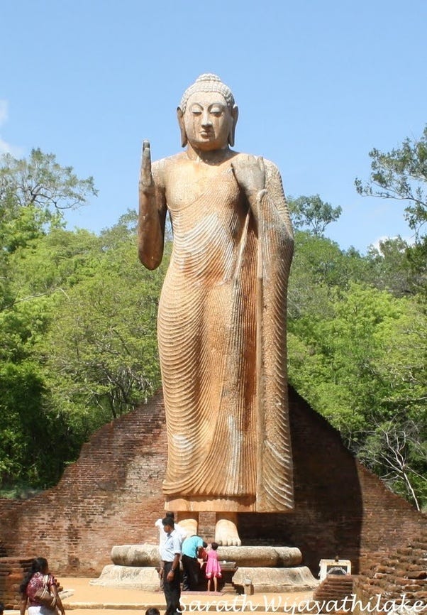 Avukana Buddha statue near Kekirawa, North Central Province, Sri Lanka. (Built 5th century CE under Dhātusēna) [Source:File:Buda de Avukana - 03.jpg - Wikimedia Commons]