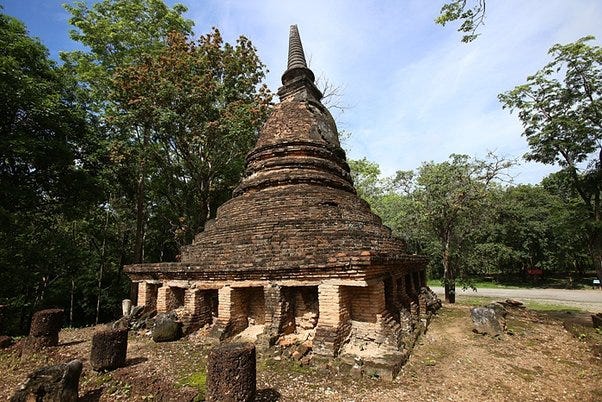 Wat Chedi Ngam (Temple of the Beautiful Chedi) in Sukhothai, Thailand (Built possibly late 14th century CE) [Source: Wat Chedi Ngam, Sukhothai, Thailand]