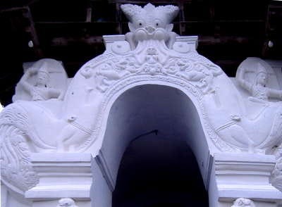 Makara-Tōraṇa shaped entrance in Naga Vimanaya, Kandy, Central Province, Sri Lanka [Source: Naga Vimanaya (Sri Naga Viharaya) in Kandy | AmazingLanka.com]