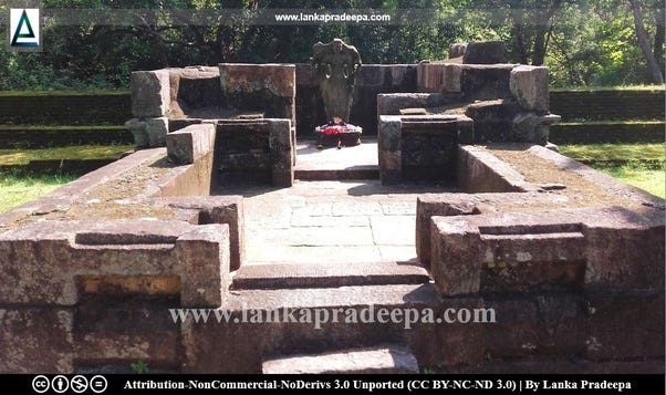 Among the earliest examples of Buddhist temples of Drāviḍa architecture is Nalanda Gedige monastic complex — this seems to have been due to Pallava influence during this time.