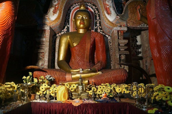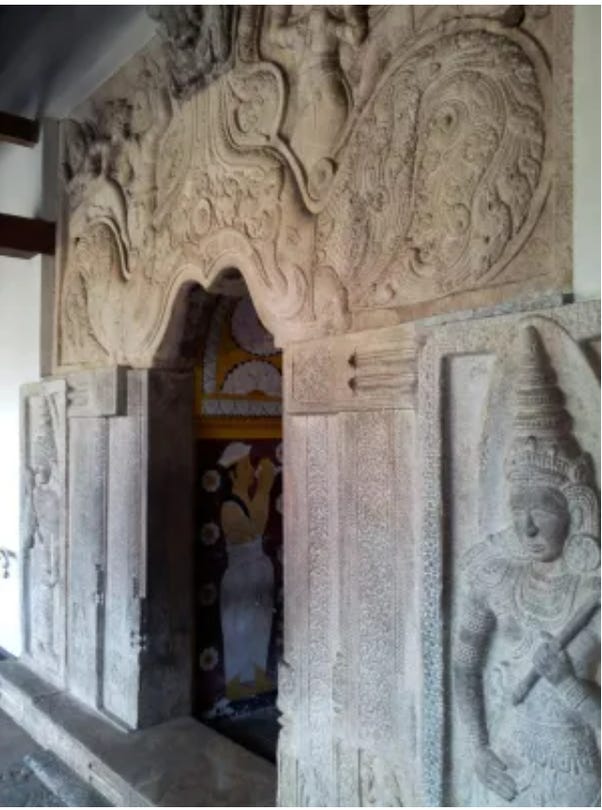 Makara-Tōraṇa framing the Buddha in Gadaladeniya Vihara in Pilimathalawa, Kandy, Sri Lanka [Source: Gadaladeniya Rajamaha Viharaya | AmazingLanka.com]