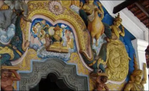 Fresco mural in Asgiriya Gedige Rajamaha Viharaya in Kandy, Central Province, Sri Lanka [Source: Asgiri Maha Viharaya and the Adahanamaluwa Gedige Viharaya in Kandy | AmazingLanka.com]