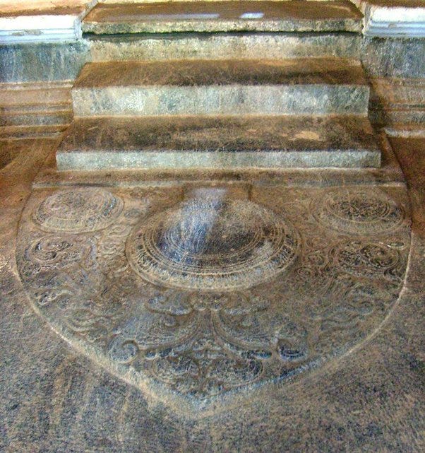 San̆dakaḍa pahaṇa (සඳකඩපහණ; moonstone)