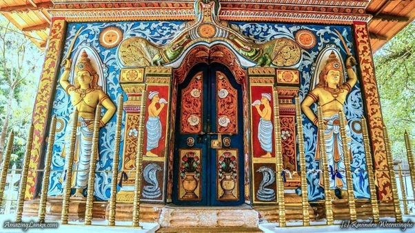 Makara-Tōraṇa over the entrance of Embekke Devale in Kandy, Central Province, Sri Lanka [Source: Embekke Devalaya | AmazingLanka.com]